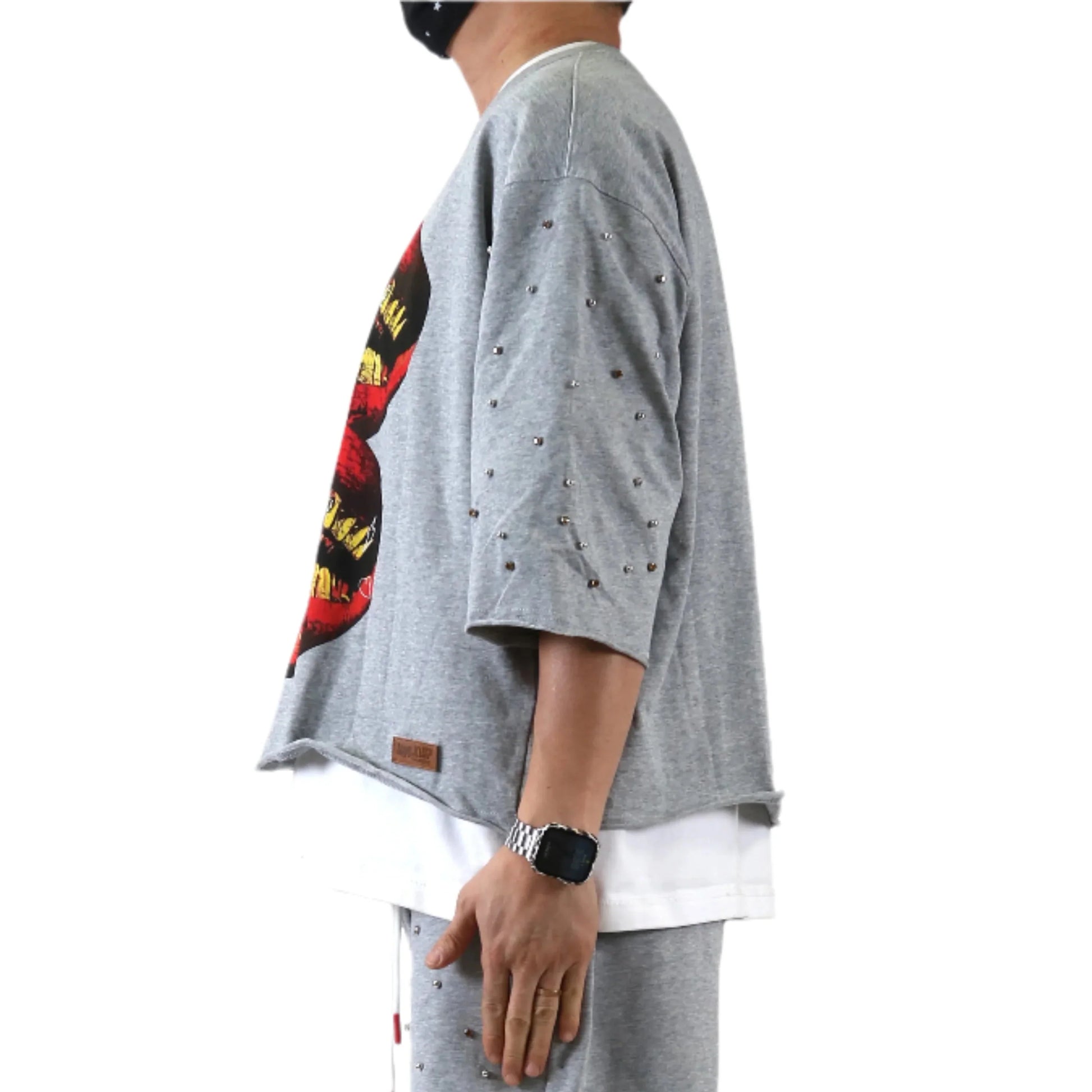 Pop Art Double Lips Artwork with Mixed Crystal Clear Stud & Stud on front & around the sleeve